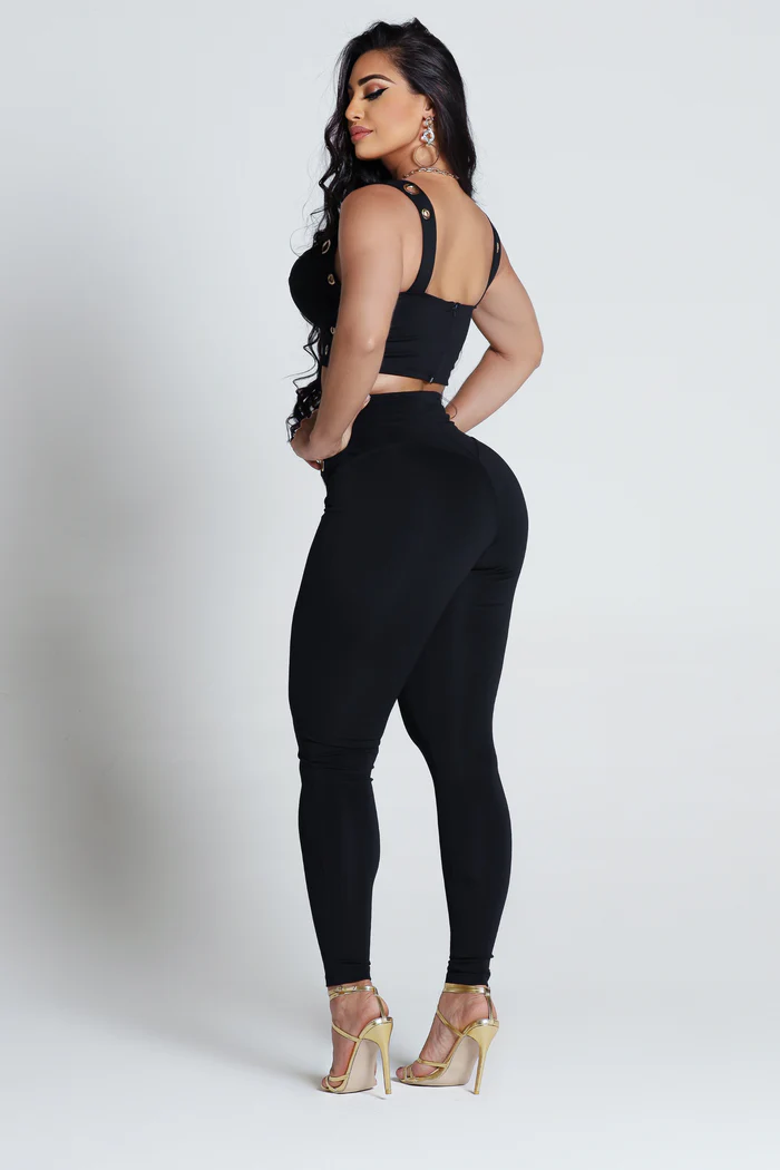 ✅ Tecido Montaria encorpado e elástico – ajusta-se ao corpo sem perder a firmeza.