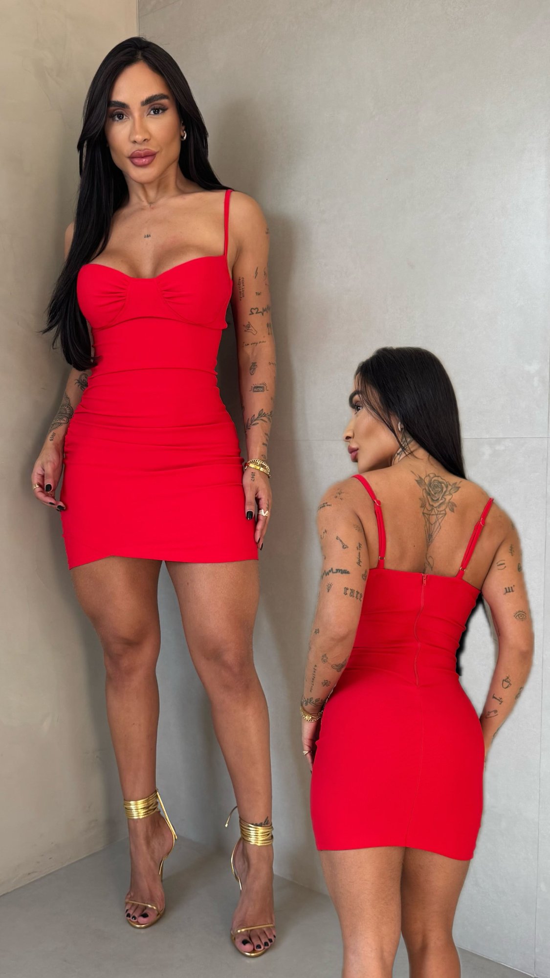 Vestido na Montaria de poliamida, tecido encorpado de alta qualidade, possui bojo que não amassa e não marca, zíper atrás, uma modelagem incrível com franzido na lateral e rocerte assimétrico, o que além de modelar o corpo faz com que a peça não marque, franzido no decote busto com regulador nas alças